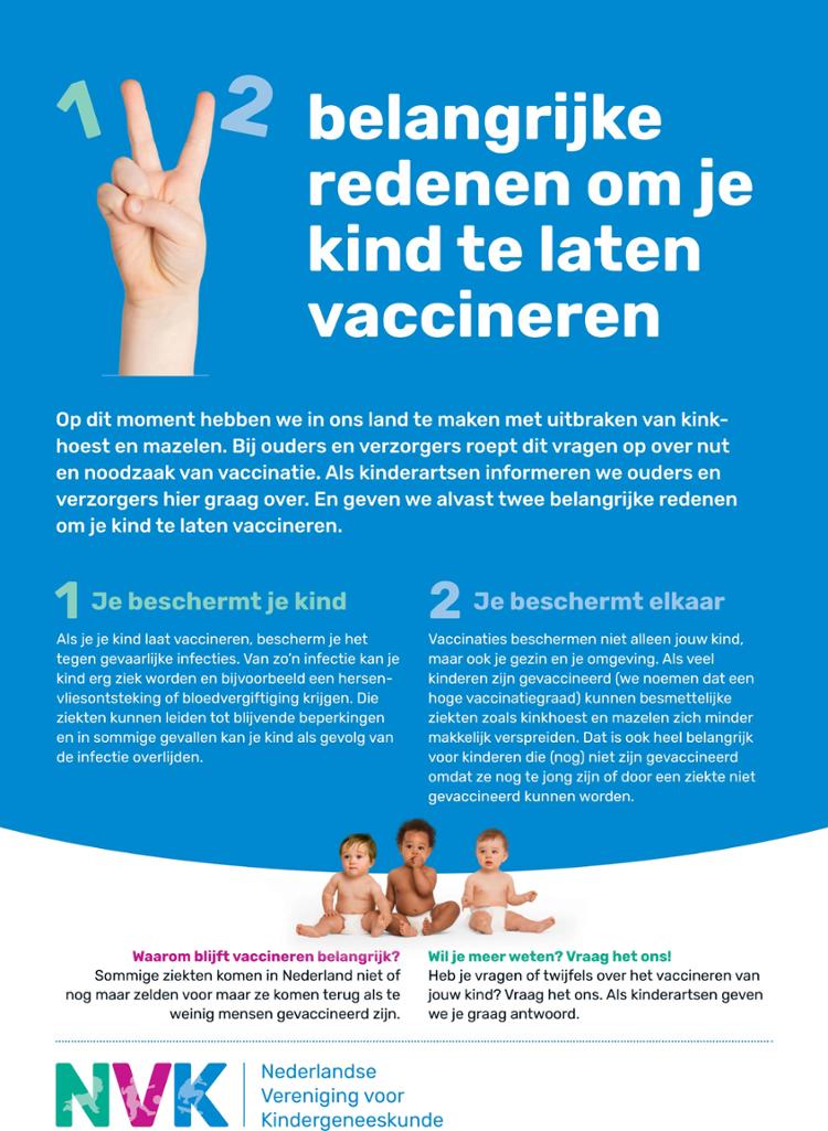 Josanne Munsters, kinderarts: "Door het succes van jarenlang vaccineren kwamen kinderziektes als kinkhoest en mazelen nauwelijks meer voor. Deze ziektes kunnen zeer ernstig verlopen, vooral bij jonge kinderen. Wij maken ons als kinderartsen grote zorgen over de toename van deze ziektes en de risico’s voor (jonge) kinderen. De kinderartsen gaan daarom graag het gesprek aan met ouders als zij vragen hebben over vaccinaties."