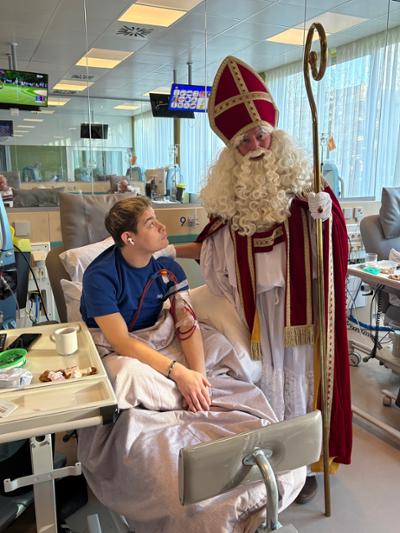 Daarna bracht de Sint een bezoek aan de afdeling dialyse. Hij nam de tijd voor een praatje met elke patiënt en kreeg zelfs nog datingadvies van één van hen. Deze tip heeft de Sint natuurlijk goed in zijn oren geknoopt! Het zorgde voor een vrolijke sfeer op de afdeling.